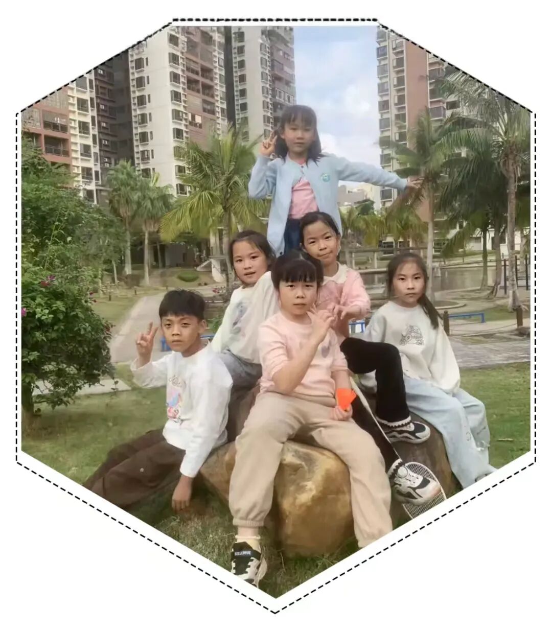 刚结束大扫除的小朋友们额角还沾着细碎的汗珠,齐齐围坐在小区凉亭的石凳上,脆生生的童声齐声扬起: