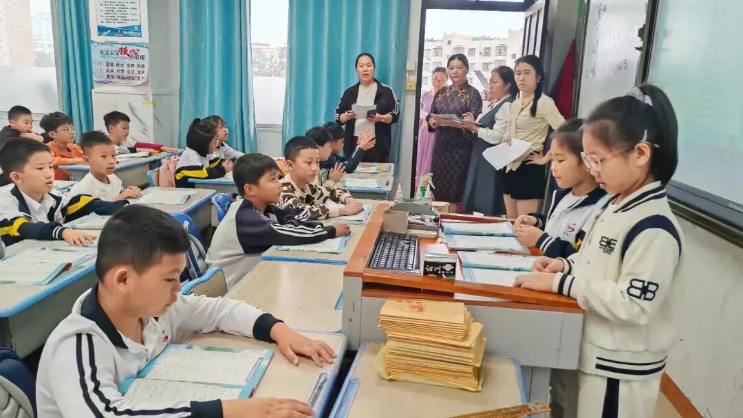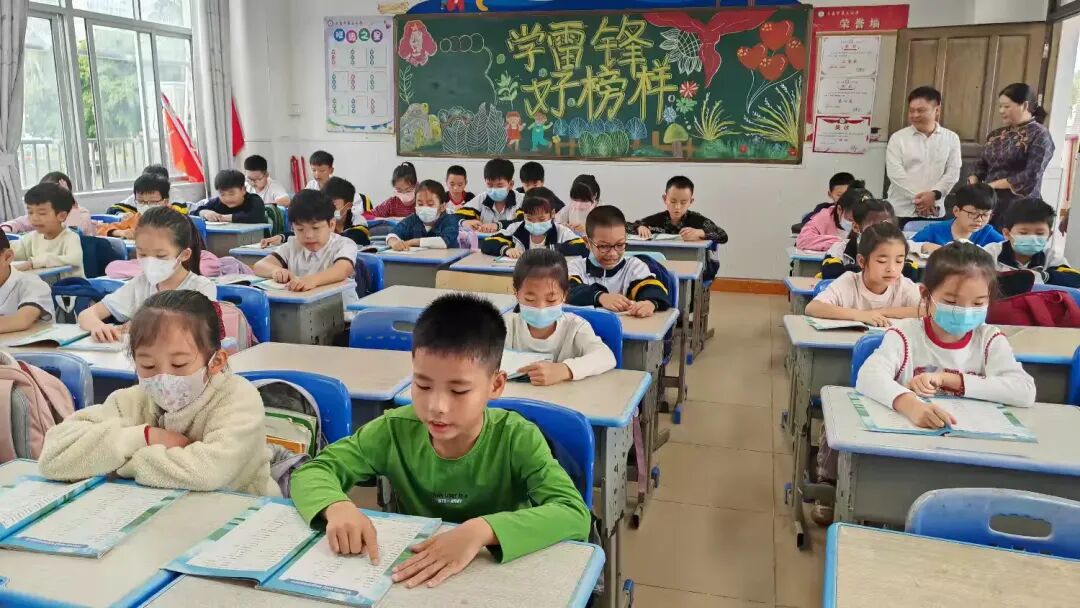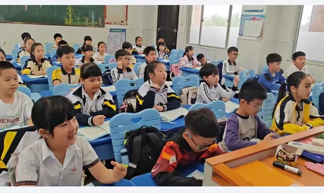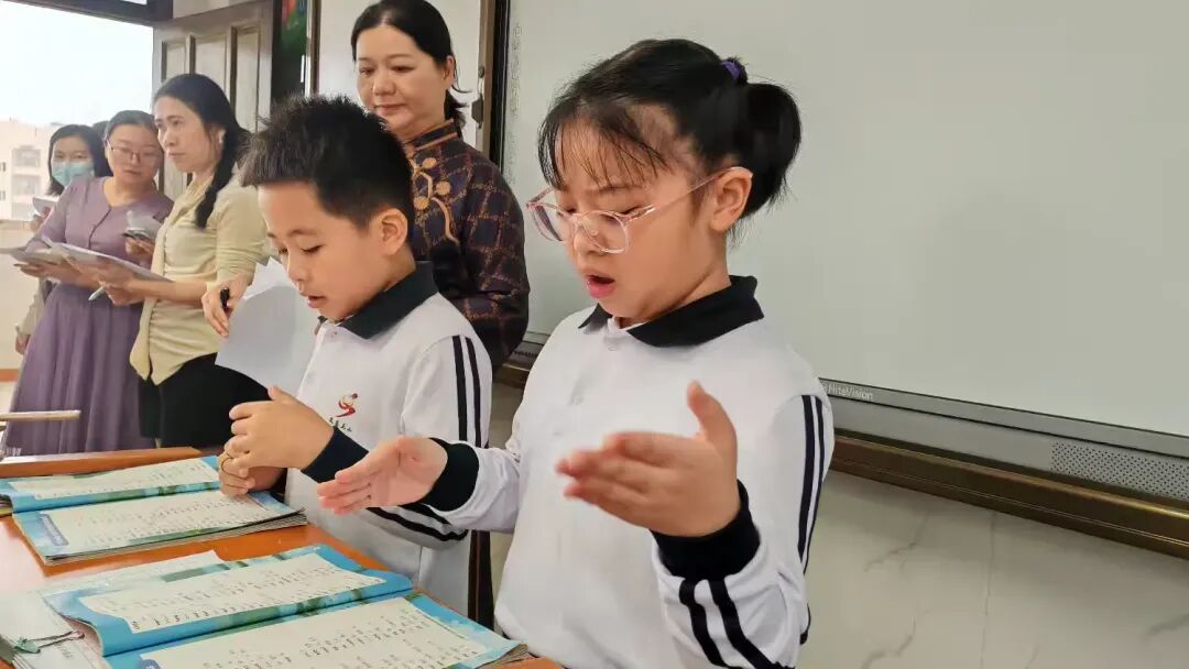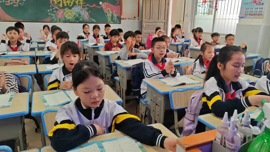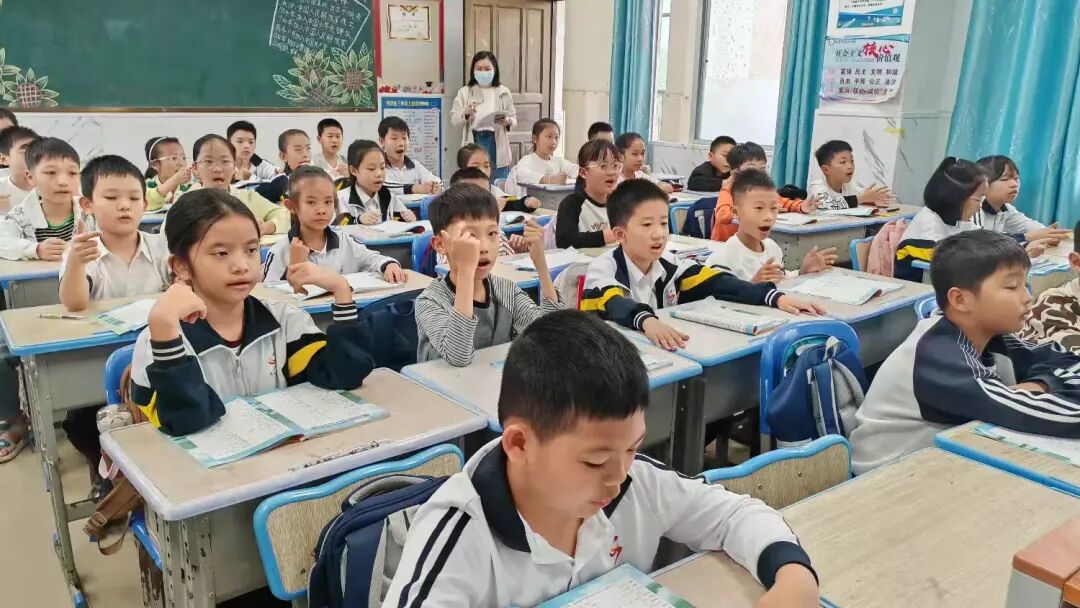 教室里,三(1)班的同学们端正坐好,他们的手势不够统一,发音不够整齐。