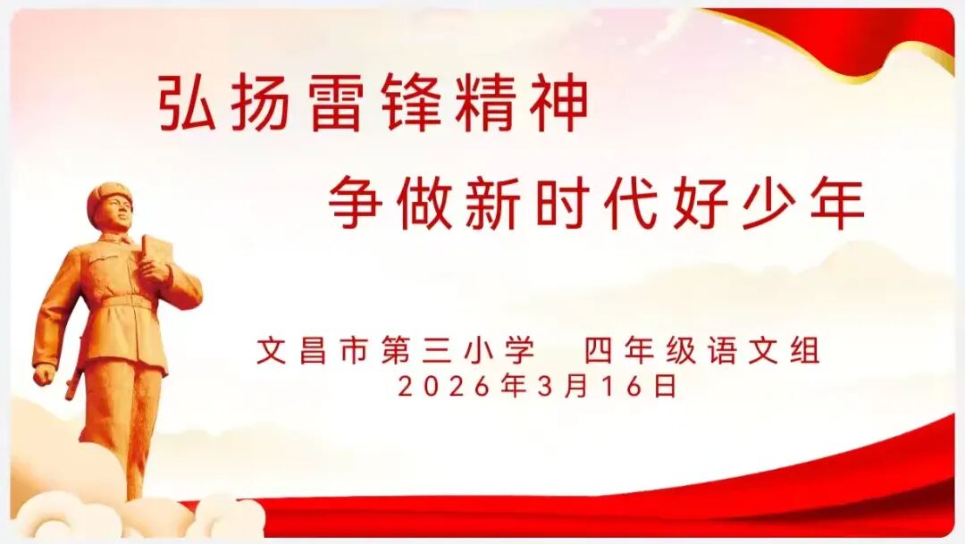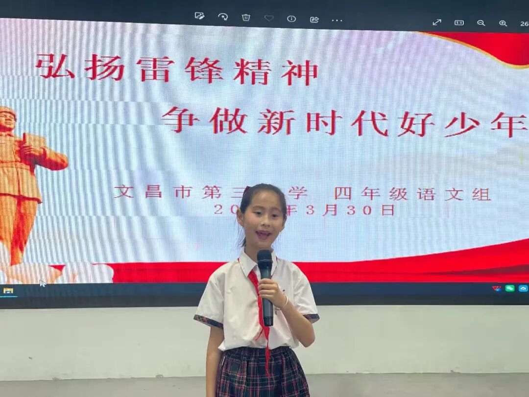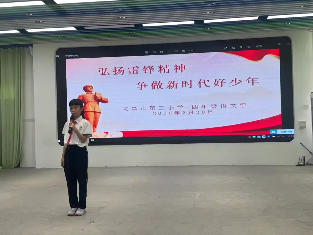 三月春风暖,雷锋精神传。为传承和弘扬雷锋精神,引导少先队员争做新时代好少年,2026年3月30日下午,笃行楼演播厅,四年级语文组举办“弘扬雷锋精神,争做新时代好少年”主题演讲比赛。