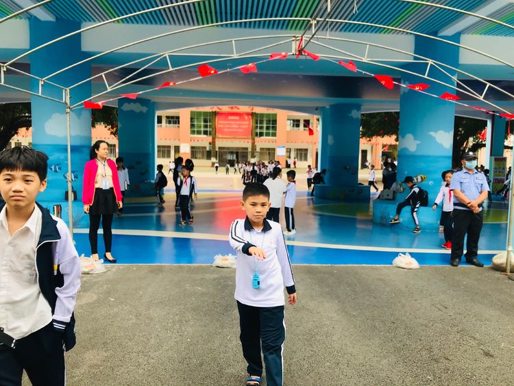 “老师,您辛苦了。”放学时间到了,各个班级排队整齐有序。
